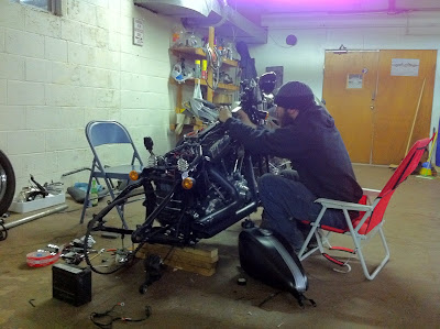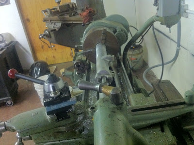 shaving down the lowers on the ironhead using the south bend while Aaron was stripping down his flstsb.